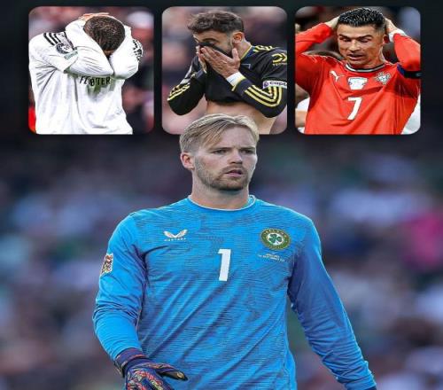 爱尔兰门将凯莱赫在世预赛(爱尔兰0-1葡萄牙)扑出C罗的点球,赛后他在社媒晒庆祝照。