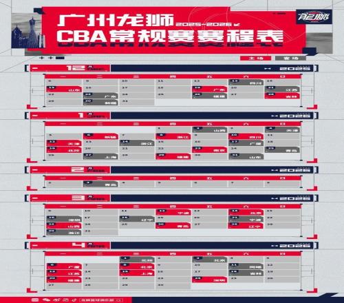 2025-2026赛季CBA联赛常规赛将于12月12日开赛,次年4月24日收官,新赛季常规赛共42轮(主、客场分别21场)。