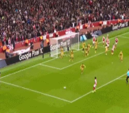 第39分钟,阿森纳前场任意球机会,赖斯主罚送入禁区,埃泽抢到第二落点,二踢脚凌空爆射,攻破老东家球门,阿森纳1-0水晶宫。
