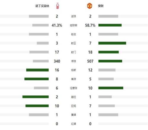 第61分钟曼联差点扳平比分,B费的贴地斩被立柱弹出,卡塞米罗的补射稍稍偏出,不甘心被逆转的红魔,在余下的时间大举压上围攻森林,第81分钟阿玛德轰出一脚世界波,将全场比分定格为了2-2。