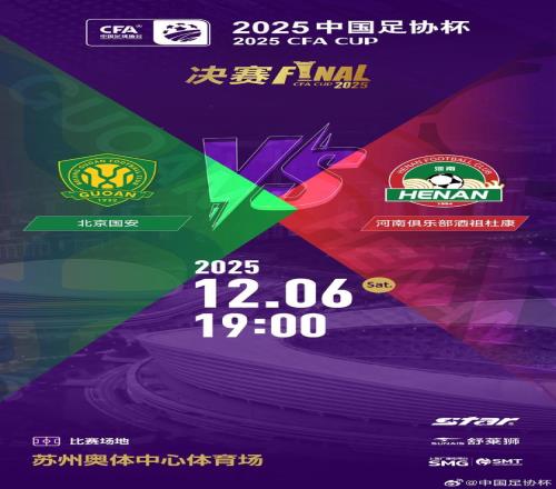 12月6日(星期六)19:00,备受关注的2025中国足协杯决赛将在苏州奥体中心体育场上演,由北京国安迎战河南队。11月6日上午,这场巅峰对决的门票正式开售,结果,开票后不久就被抢购一空,足见这场比赛的火爆程度。