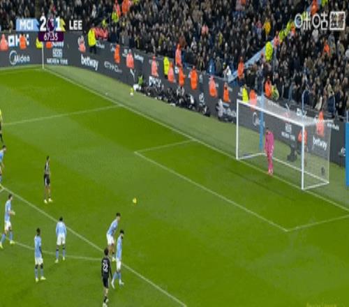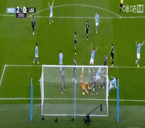 第24分钟,曼城前场左侧开出角球,利兹联门将卢卡斯-佩里出击没能将球打远,格瓦迪奥尔门前乱战中抢先一脚捅射将球打进,主裁判经过VAR复核后判定进球有效,曼城主场两球领先。