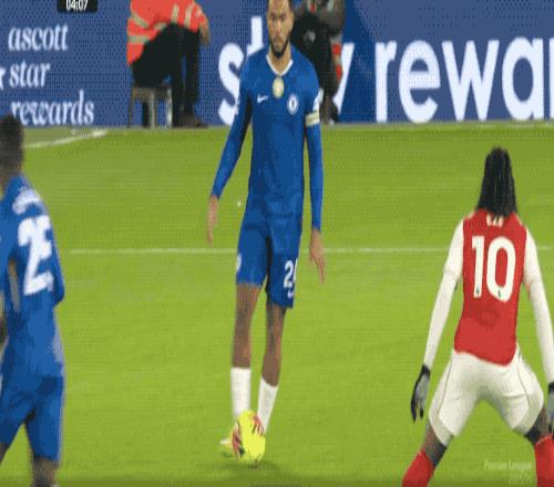 第12分钟,赖斯的界外球被解围,埃泽送出妙传,萨卡准备打穿桑切斯的小门,被蓝军门将识破。