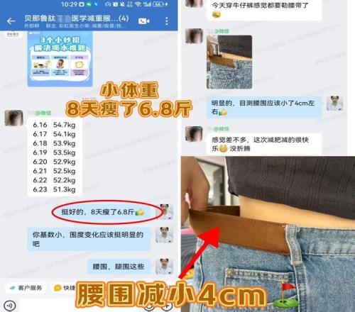基本上,平均使用贝那鲁肽3-4个月,平均腰围减少5-11厘米,相当于腰围缩小了一整个尺码!