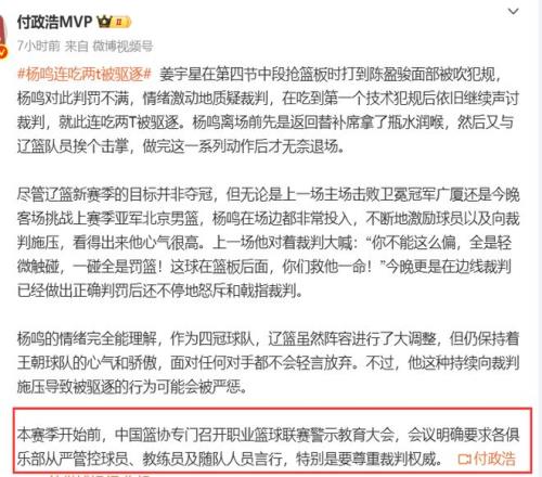杠上了!京辽战被驱逐后,杨鸣深夜发视频回应裁判:必须学会回击