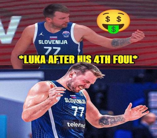 比赛里的有趣一幕:东契奇撞倒施罗德吃到第四次犯规,还做出了数钱手势,而倒在地上的施罗德则露出了邪魅一笑。