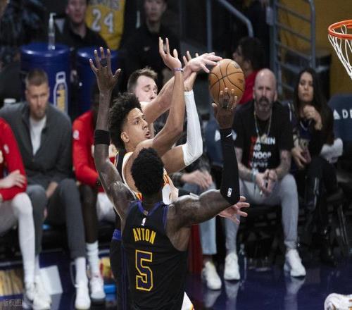 末节初段,老鹰反击势头还在继续,湖人则是频频被犯规站上罚球线,丹尼尔斯补篮追到只差11分,雷迪克暂停。暂停以后,詹姆斯和东契奇两人同时发力,一波8-0小高潮稳住局面。老詹再次造犯规罚球重新领先到了20分以上。东契奇抢断,老詹助攻艾顿打进,八村三分再中,比赛彻底被打花,老鹰逆转失败。