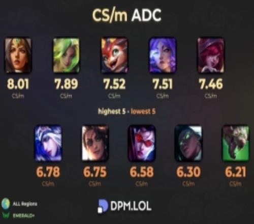 全球统计:当前版本每分钟补刀数希维尔最高8.01老鼠最低6.21